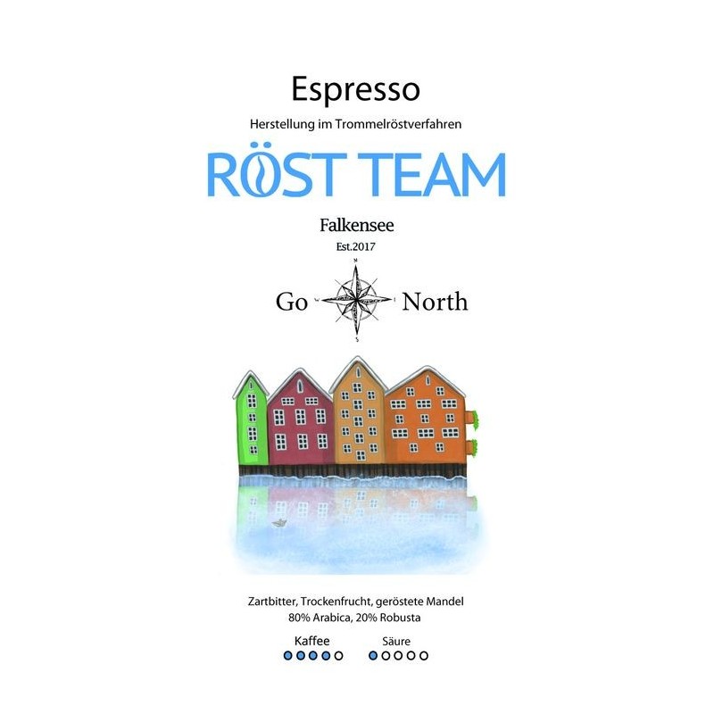 80% Arabica, 20% Robusta. Kräftig, sehr wenig Säure.